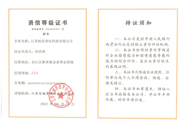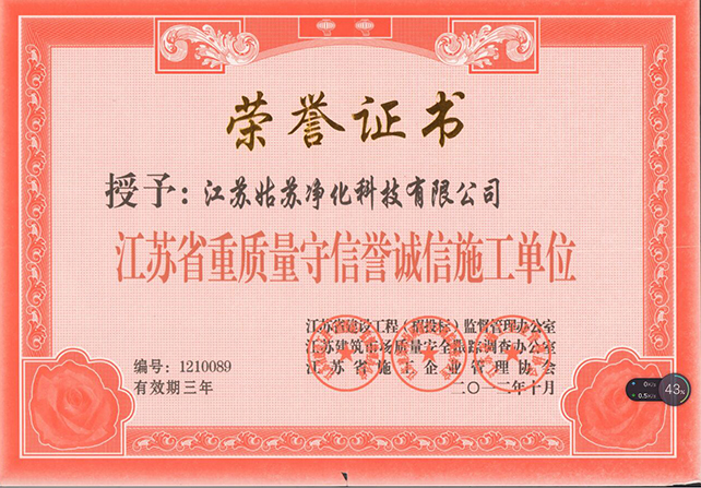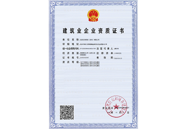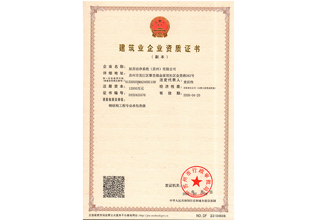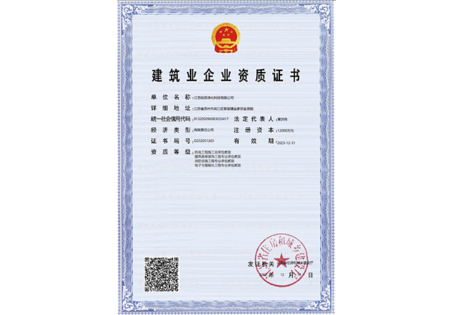 江蘇姑蘇凈化科技有限公司,具有國家電子與智能化工程壹級資質(zhì),國家機(jī)電安裝工程壹級資質(zhì),國家建筑裝修裝飾工程壹級資質(zhì) 姑蘇凈化科技有限公司,具有國家機(jī)電工程施工總承包貳級、國家空氣凈化工程二級資質(zhì),國家電子與智能化工程二級資質(zhì),國家機(jī)電安裝工程二級資質(zhì),國家建筑裝修裝飾工程二級資質(zhì),消防設(shè)施工程專業(yè)二級資質(zhì)企業(yè)。
