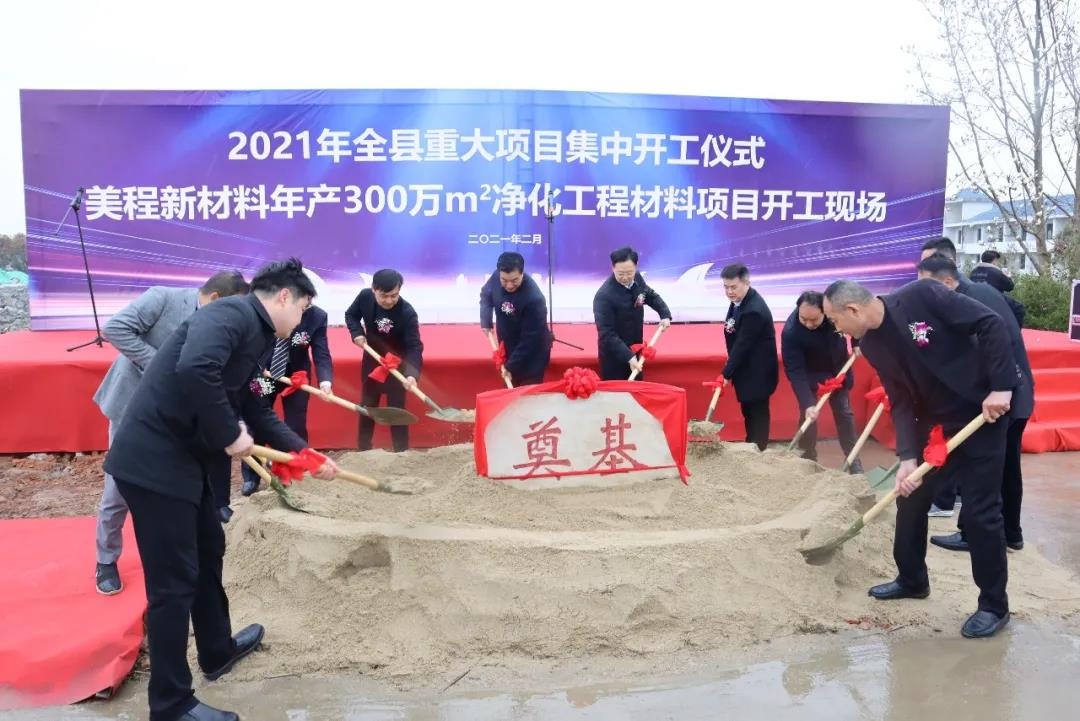 王敏指出,美程新材料科技江蘇有限公司年產(chǎn)300萬平米凈化工程材料項(xiàng)目,是我鎮(zhèn)今年擴(kuò)大開放開發(fā)、持續(xù)創(chuàng)新驅(qū)動(dòng)的重點(diǎn)項(xiàng)目之一。凈化工程材料項(xiàng)目的開工建設(shè),將為美程公司做大做強(qiáng)奔向更加美好前程,帶來無限機(jī)遇、開拓美好未來;射陽湖這個(gè)“好地方”,也將因?yàn)槊莱坦镜耐顿Y加盟,變得好上加好、越來越好。